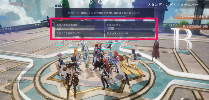 スタンディング・フォーエバーは、クリスタルオブアトラン(CoA)の知識が問われるチャレンジモードです。ゲームに纏わる問題が4択で出題されます。