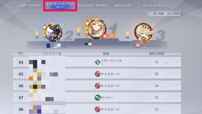 | ランキング順位 | 連続正解数 (ゲームを跨いでもカウントされる) |