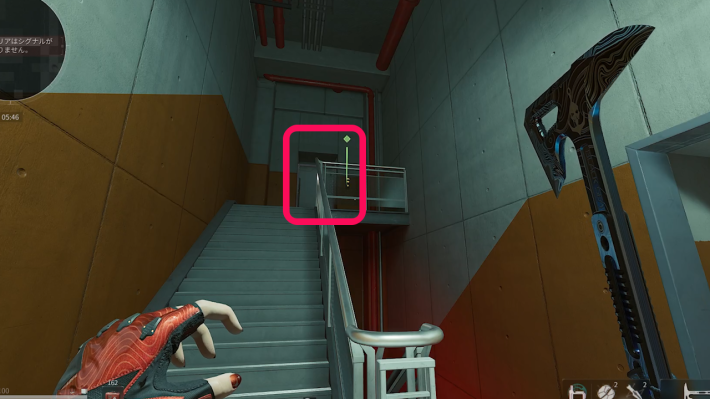 オペレーションフラッドラインの受注場所からエレベーターシャフトを右に進むと階段があります。階段を下りて右に進めば北側の扉、左に進めば南東の扉へ到達可能です。