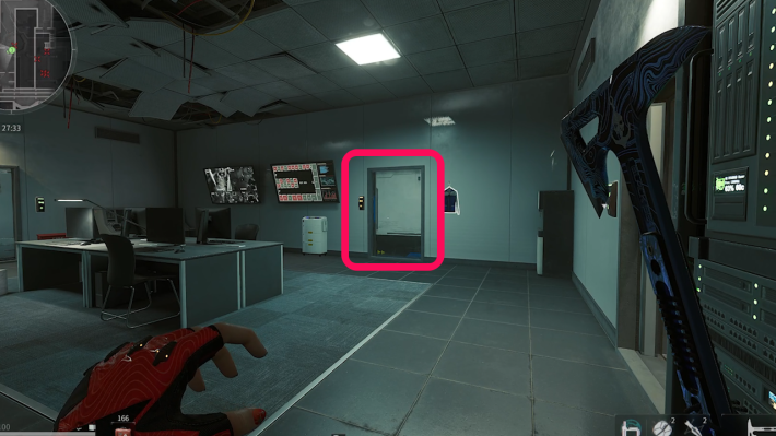 医療実験エリア2階の東側に位置する鍵部屋です。コンピューターケースとサーバーが設置されているため、紫以上の電子機器アイテムを狙えるカードキーとなっています。