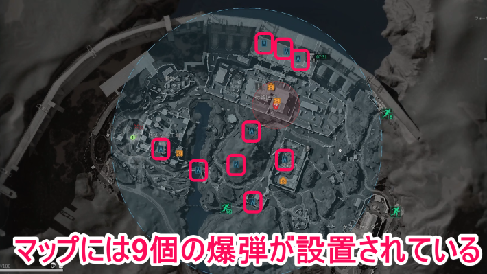 ミッションを受注すると、マップ上に爆弾の位置が表示されます。どの爆弾を解除してもクリアできるため、近い爆弾から解除するのがおすすめです。