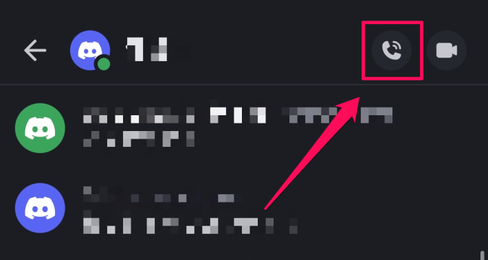 スマホアプリ版Discordでもフレンドと通話が可能です。ダイレクトメッセージ画面右上の「音声通話を開始」をタップすると通話が開始されます。
