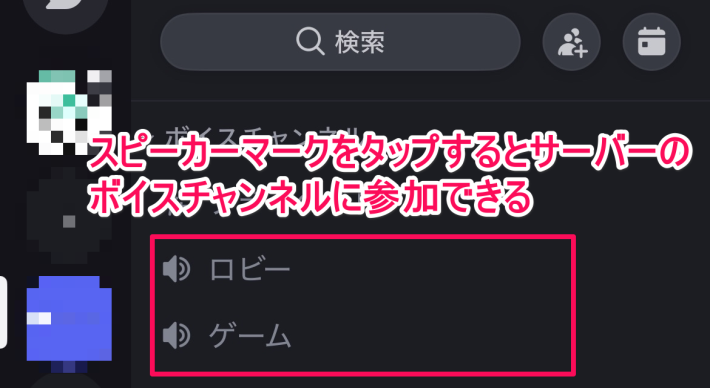 サーバーに参加している場合は、スピーカーアイコンのチャンネルをタップすることでボイスチャンネルに入室できます。入室した時点ですぐに通話が開始するため、入室する前に音量などを調節しておきましょう。