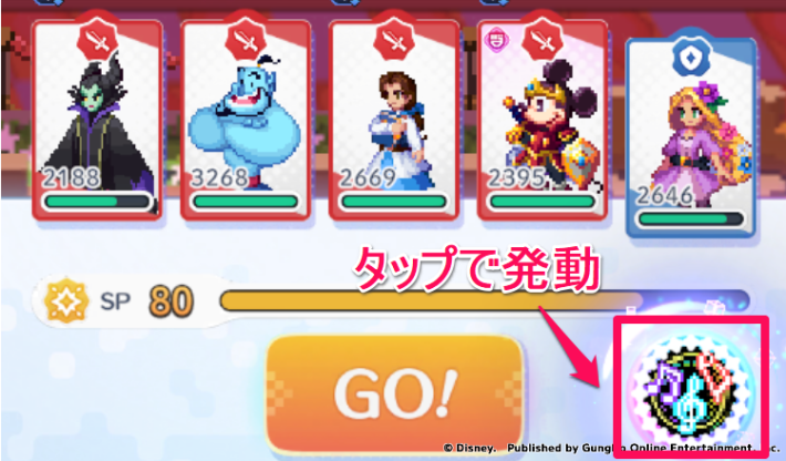 キャラのアクションを一通り選択し終えたら、画面下部の「GO」をタップしましょう。ターンが開始され、選んだアクションに基づいて戦闘が開始されます。アクションを選ぶ際は制限時間もないので、ゆっくり戦略を考えることも可能です。