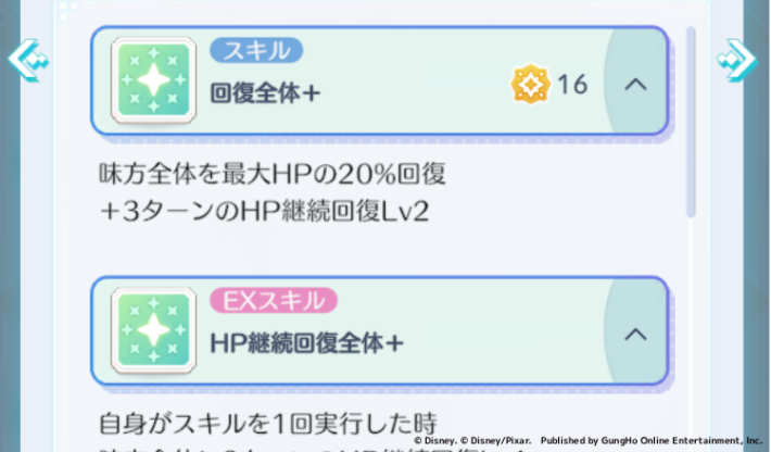 エイリアン | 回復(HP継続回復) ・モアナ、ジャファー、ジーニーのEX発動要員 ・バフが3種以上かかっていれば毎ターン10%回復可能 |
