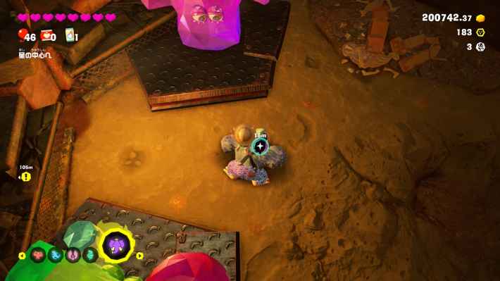 - B100024.ガイドの道すがら×1遺跡「氷を導くタイムアタック」の隠しバナモンド。ゴール地点付近、タルの反対側に下向きに掘れる穴がある