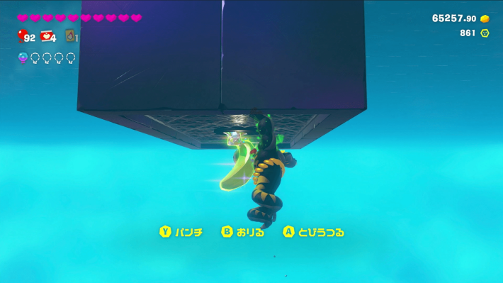 - B120107.光を灯して秘蔵のお宝×1ヒカリ石を掴んで、チェックポイント「ヒカリ石切り場」の後ろにあるスタンドに使う