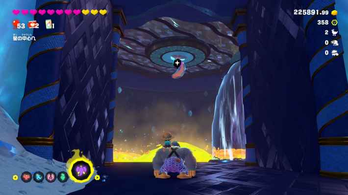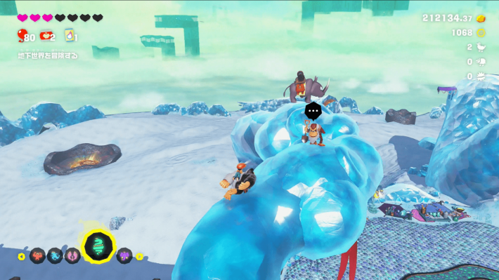 - B120355.KO!レーザーハイジャンプ×1遺跡「VSモルボロ×2」の報酬。グランピーコングの形をした氷塊の真下