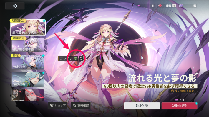 またガチャ(召喚)画面では、ピックアップ対象のキャラネームの横に属性が表記されています。どのキャラクターを引くか考える際の参考にしましょう。