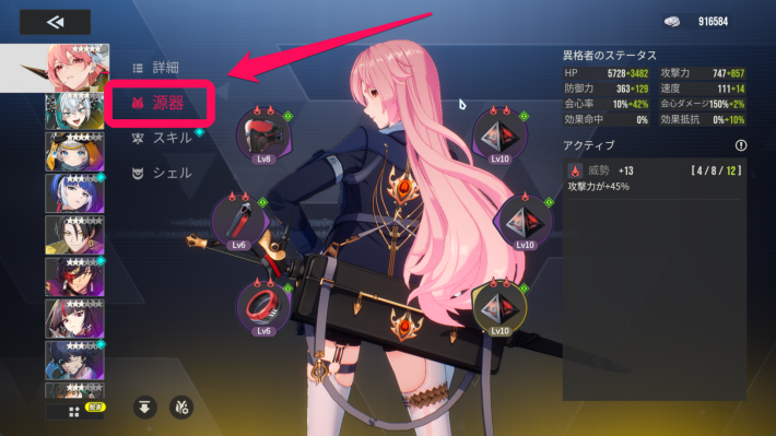 源器はキャラクターのステータスを上昇させる装備品です。単純にステータスを上昇させるだけでなく、追加効果を得るマトリックスというセット効果も持っています。