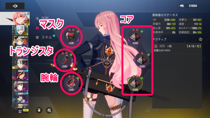 サブステータス | マスク | トランジスタ | 腕輪 | コア |
