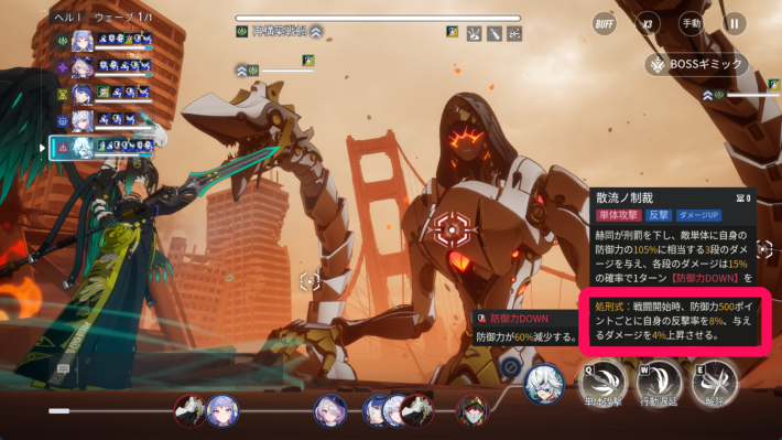 赫同は防御力500毎に被弾時の反撃確率と与ダメが上昇します。通常攻撃時に