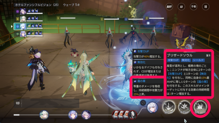 霜の華以外にも多様なバフと回復