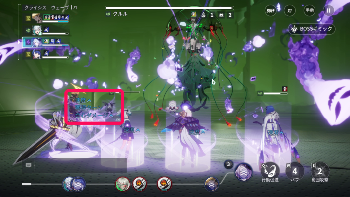 ![]() | ・敵が3回行動すると行動進捗増加 ・敵の行動に割り込める場合も |