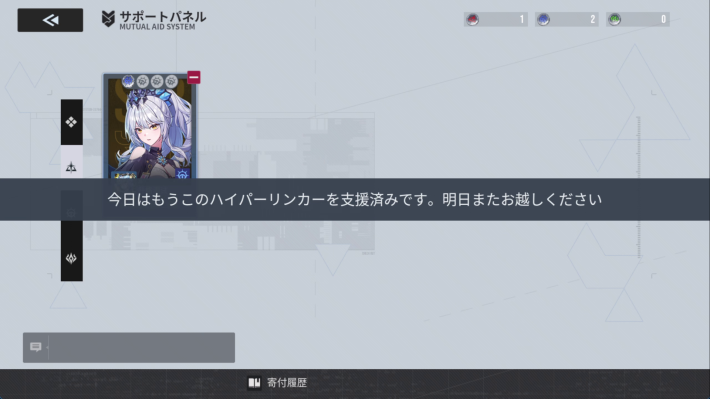 寄付は同じプレイヤーに対して1日1回まで