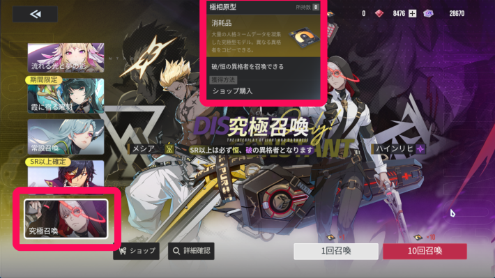 究極召喚は通常の石では引けず極相原型という専用のガチャチケットが必要です。入手機会が少なく天井までかなり時間がかかりますが強力なキャラを引ける確率は高く、長い目で見ればおすすめできます。