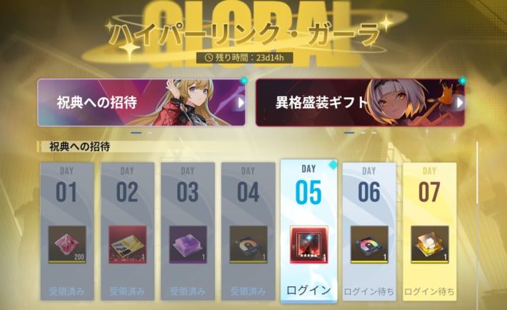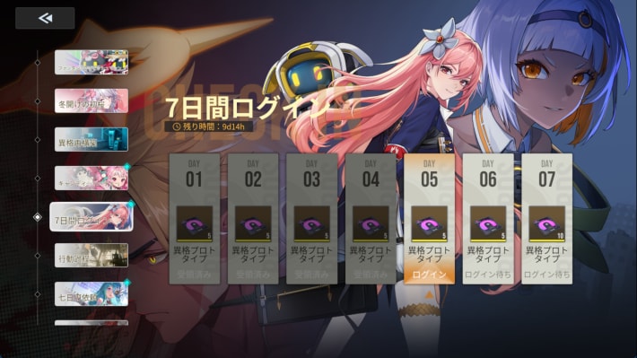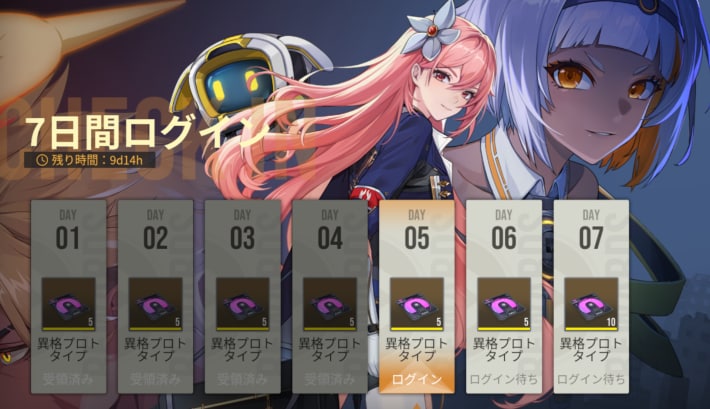 7日間ログインは期間限定のログインボーナスが貰えるイベントです。毎日ガチャチケットを5枚貰えるので、忘れずにログインしましょう。