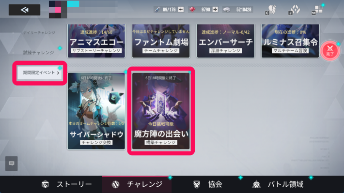 期間限定のチャレンジはチャレンジ一覧画面の最下部から参加することができます。