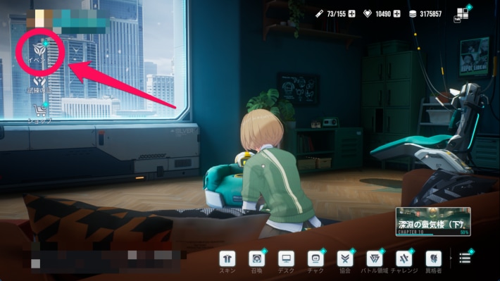 イベント画面は、ホーム画面の左上の「イベント」アイコンをタップすることで開くことができます。