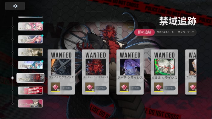 禁域追跡はチャレンジのボスの初撃破報酬がまとめられている常設イベントです。ヒドラクリスタルや強化素材、ガチャチケットなどが獲得できます。