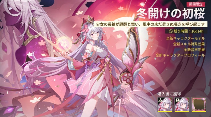 冬開けの初桜はSSR異格者ヨリのスキン/アイコン/アイコンフレームを有料で購入できるイベントです。