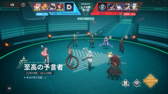 至高の予言者は毎週更新される期間限定のチャレンジです。NPC同士のトーナメント戦の勝敗を予想しイザリアコインやクリスタルを懸け、予想が当たると報酬を獲得できます。