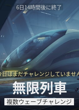 無限列車は毎週更新される期間限定のチャレンジです。全24ウェーブの戦闘で突破したウェーブ数に応じた報酬を獲得できます。毎日3回まで挑戦可能です。