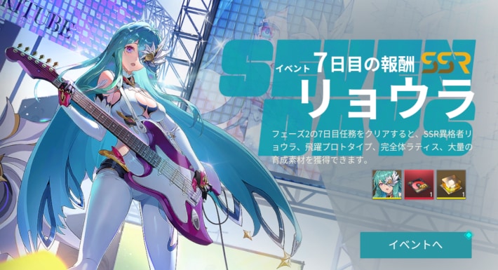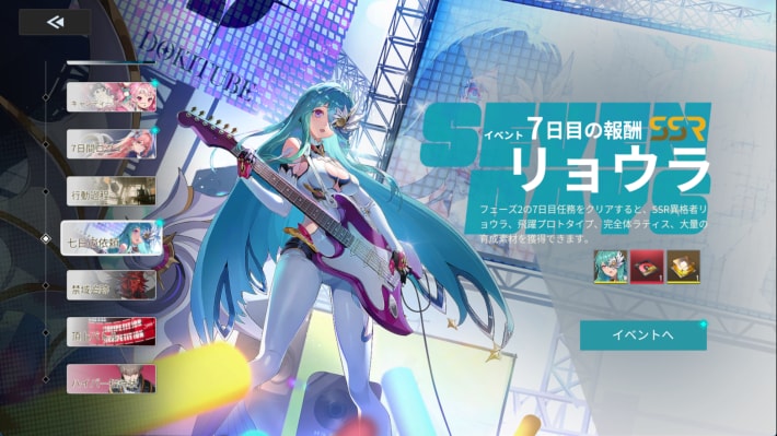 七日の依頼は7日間毎日目標リストが提示され、7日分全てを達成することでSSR異格者リョウラが手に入る常設イベントです。リョウラは強力なヒーラーなので、是非達成して入手しましょう。