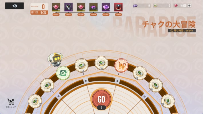 チャクの大冒険はすごろくタイプのミニゲームイベントです。サイコロを消費してチャクを進め、止まったマスの報酬や周回報酬を獲得しましょう。
