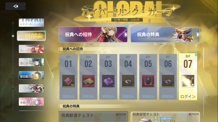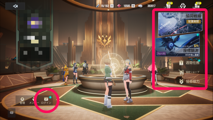 ログインするだけで報酬が貰えるイベントや毎日参加が必要なイベントが開催されていることもあるので、毎日ログインしたらまずはイベントを確認しましょう。
