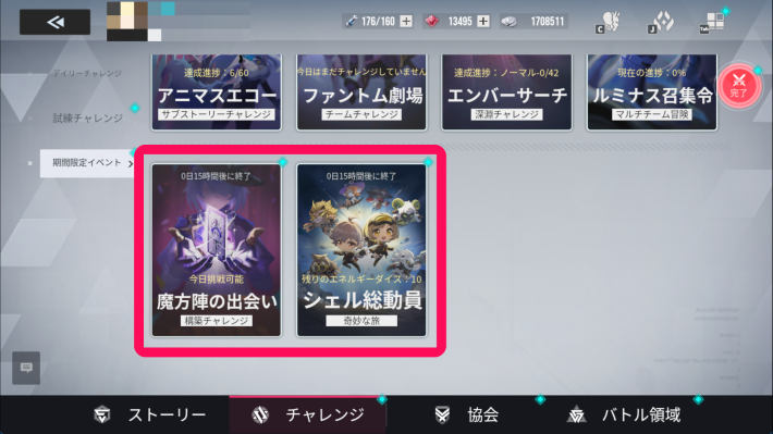 チャレンジメニューの最下部から期間限定チャレンジに参加できます。期間限定チャレンジはデイリー報酬が貰えるものが多いため、毎日確認しましょう。