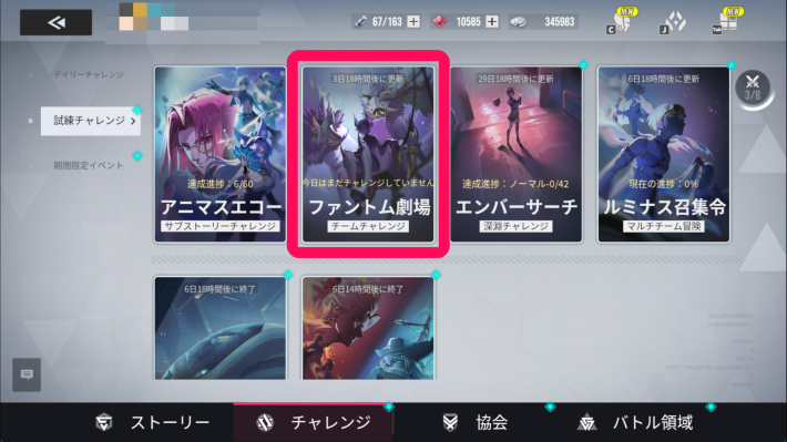 ファントム劇場はデイリー報酬が貰える常設のチャレンジです。クリアスコアで貰える報酬が変わるため、積極的に高スコアを目指し毎日参加しましょう。