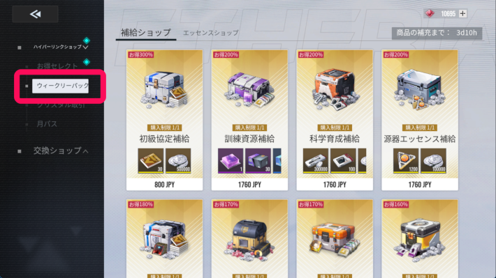 課金ショップには毎週補充されるウィークリーパックがあります。お得な課金パックの他にクリスタルで購入できるお得なパックもあるので、毎週確認するのがおすすめです。