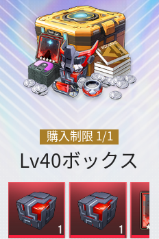 |  ▼Lv〇〇ボックス | 【おすすめ度】★★★★☆ 【購入回数】各1回 【主な内容物】 Lvによって内容物が異なる 主にガチャチケや育成素材等 【値段】Lvによって異なる |