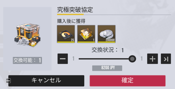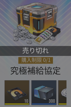 |  ▼究極補給協定 | 【おすすめ度】★★★★☆ 【購入回数】1回 【主な内容物】 極相原型×10 初級潜在能力補給袋×300 【値段】2500円 |