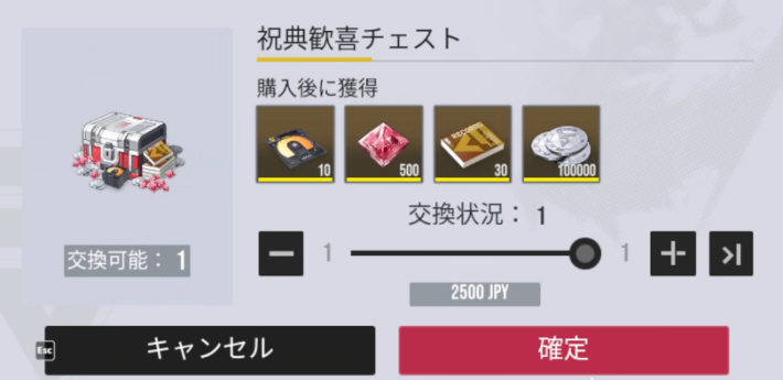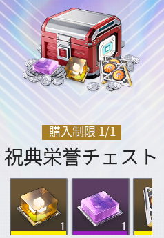 祝典歓喜チェストは期間限定で一度だけ購入できる課金パックになります。極相原型が安価に手に入るためおすすめです。