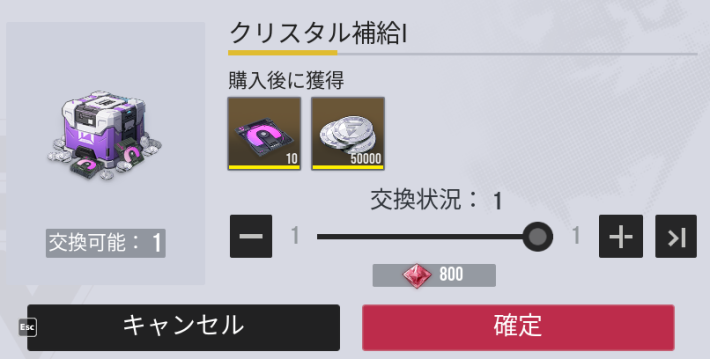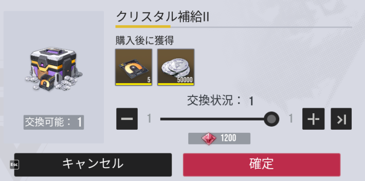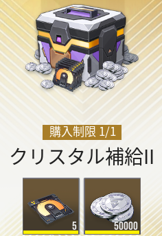 クリスタル補給は毎週一度だけ購入できる課金パックです。直接ガチャを引くよりクリスタル300個分お得なため、クリスタルがあるなら毎週交換することをおすすめします。