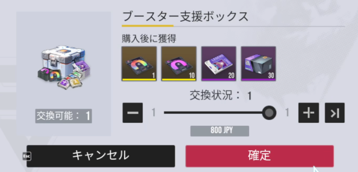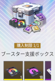 ブースター支援ボックスは一度だけ購入できる課金パックになります。SR確定ガチャチケットである特定プロトタイプと異格プロトタイプが安価に手に入るためおすすめです。