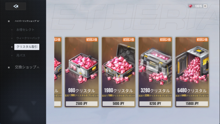 直接クリスタルを購入する場合、初回の2倍ボーナス込みで課金パックより少し下程度のコスパになります。まずはガチャチケット入りの課金パックを買った後にクリスタルを買うのがおすすめです。