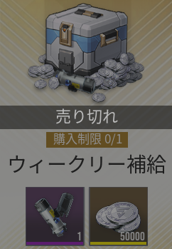 ウィークリー補給は毎週一度無料で購入できるパックです。スタミナ回復アイテムの精神安定剤とイザリアコインを獲得できます。