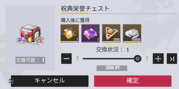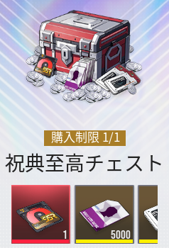 祝典至高チェストは期間限定で一度だけ購入できる課金パックです。クリスタルを購入して常設召喚を80回引くよりもコスパが良い上に、原相異格者1凸分の原質Pt獲得できます。