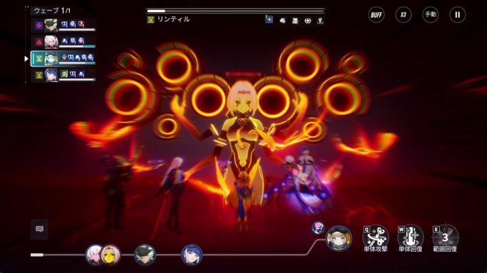 ※画像では4人編成ですが、ストーリーでの実戦時にはサニアを加えた5人編成になります。