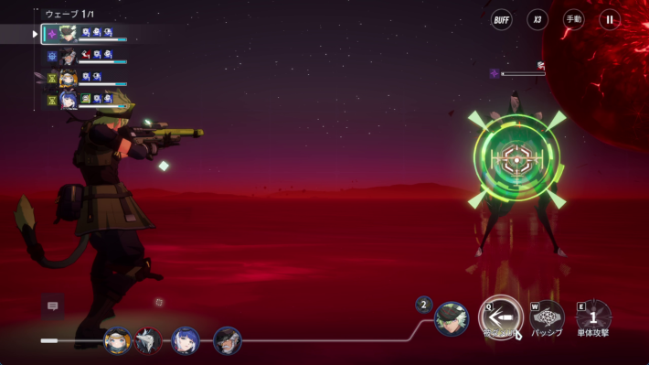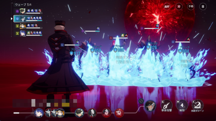 10-4章では戦闘にSSRサニアが加わります。SSRサニアは敵の耐久を無視できる持続ダメージを軸に戦うキャラで、【帷】を解除することでSSRサニアも火力を出せるようになります。