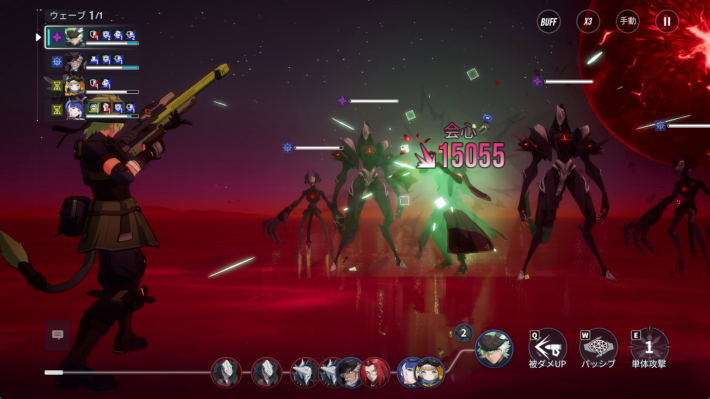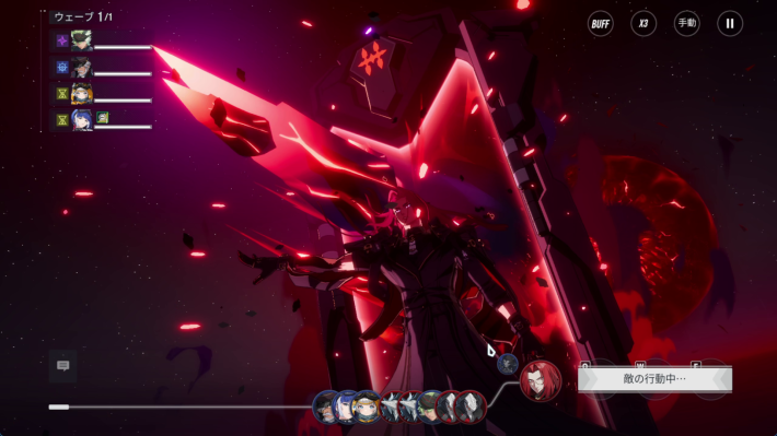 ギミックを要約すると「ボスのバフが残っている状態で全体攻撃を受けるとどんどん不利になる。ボスにデバフを付与することでバフを解除できる。」ということになります。