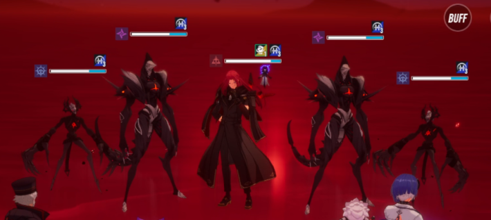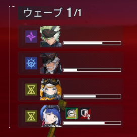 【原質不調】を付与されている時に雑魚に攻撃されると確率でスタンになるため、デバフ解除役のダイナ以外はまず両脇の雑魚2体から狙いましょう。