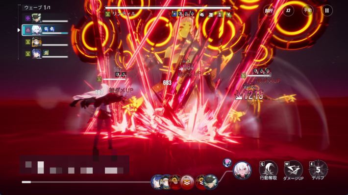 ダイナはスキル3>スキル2の順番でスキルを使用し、ボスのバフを解除しましょう。スキル2は単体攻撃なのでボスをターゲットするのを忘れないようにしてください。上手くいくと2ターンでバフを全解除できます。