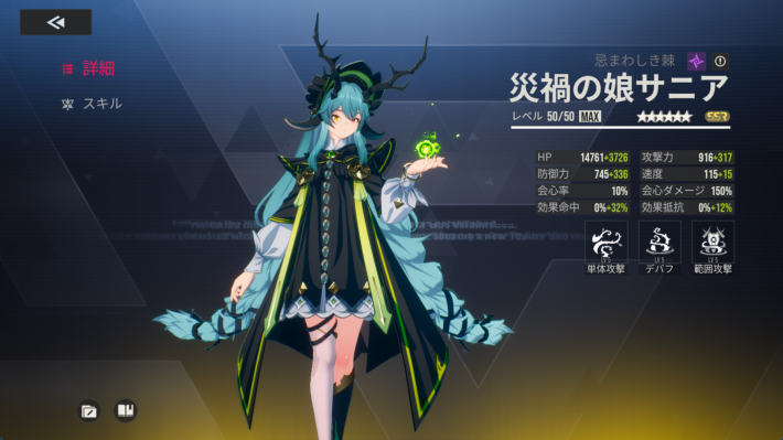 ![]() | Lv:☆4 Lv40 優先ステータス:効果命中 スキルLv:不要 マトリックス:疾走12 シェル:速度/行動進捗を上げるシェル |