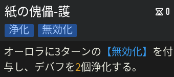 右の雑魚は毎ターンオーロラに3ターンの【無効化】を付与し、デバフを2個浄化するサポート役です。【無効化】はデバフを一切受けなくなる強力なバフで、対処するにはバフ解除持ちのキャラが必要になります。