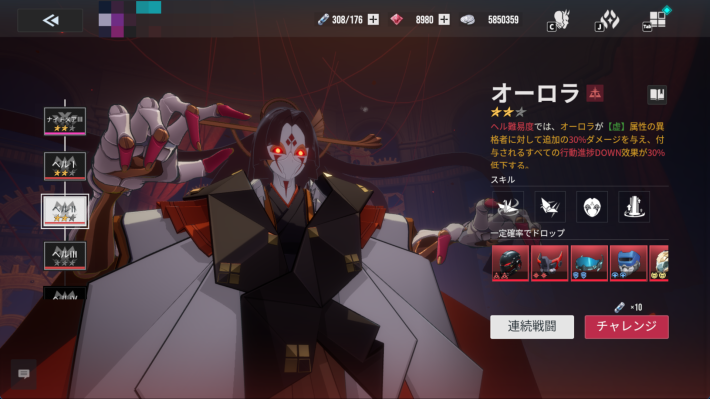 オーロラは多種のギミックが影響し合うことでランダム性が強く、工夫や戦略ではどうにもならない部分もあります。倒せない場合はスキルLv上げや低難易度での源器厳選など、現状でできる強化を優先しましょう。