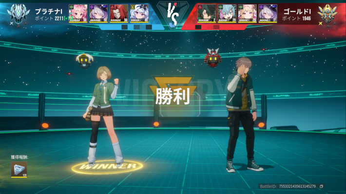 対戦が終了し勝利した場合はランクポイント上昇とコロシアム通貨120獲得、敗北した場合はランクポイント減少とコロシアム通貨60を獲得します。